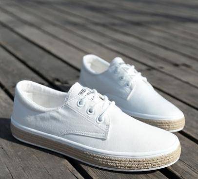 人本小白鞋女系带透气平底帆布鞋休闲板鞋韩版文艺学生女鞋球鞋
