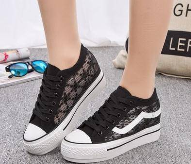 2018春季镂空时尚帆布鞋女 蕾丝低帮鞋韩版女鞋内增高休闲鞋学生