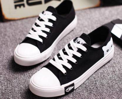 春季中学生帆布鞋女生平底系带韩版卡通黑白色百搭休闲布鞋女球鞋