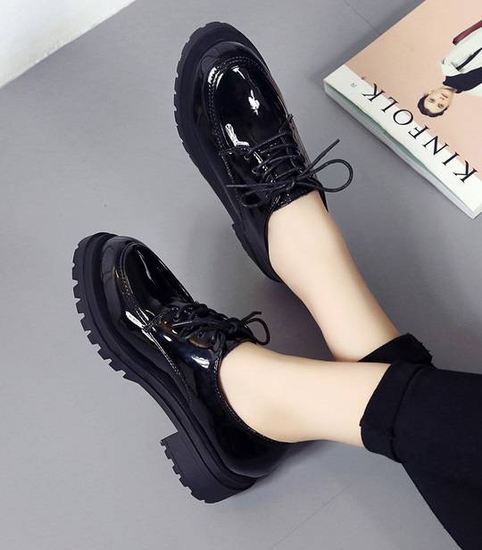 ins小皮鞋女春季2019新款中跟粗跟单鞋百搭学生英伦学院风女鞋子