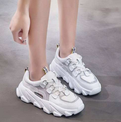 小白鞋女2019春款网鞋女透气网面老爹鞋女款厚底增高休闲运动鞋