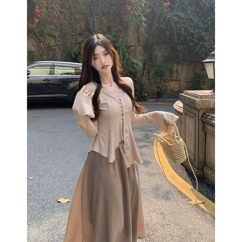 不规则开衫上衣套装吊带打底女春季2023年新款中长款半身裙三件套