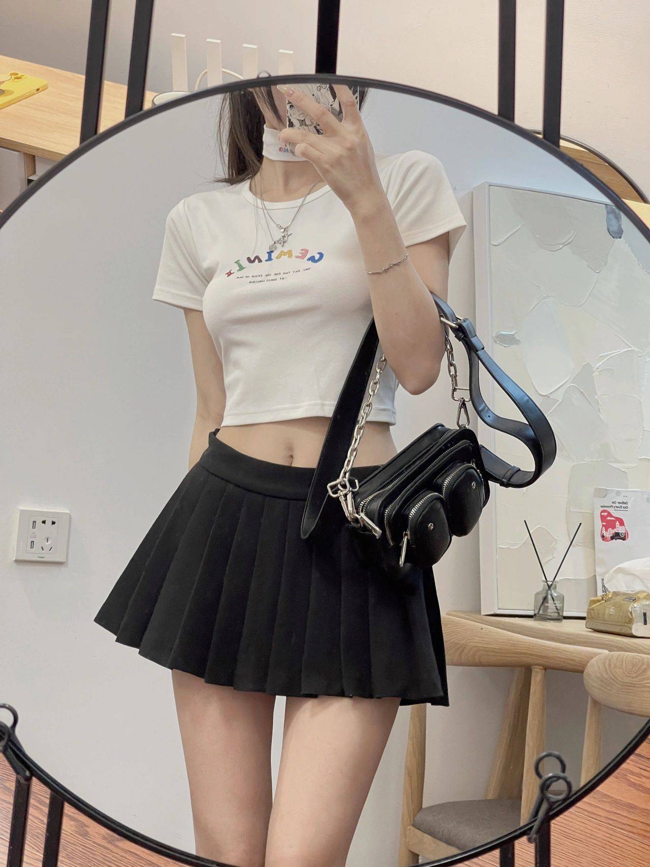 黑色高腰显瘦百褶裙女夏季小个子辣妹性感气质防走光a字半身裙子