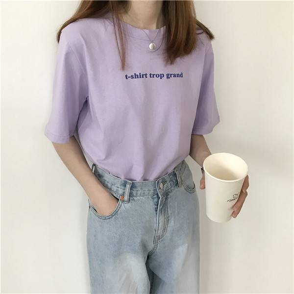 2018新款夏装紫色t恤女学生宽松超火上衣短袖女ins潮半袖