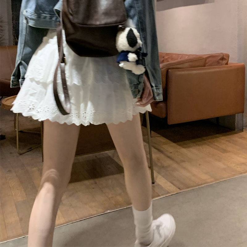 2023年新款蕾丝刺绣花边女春夏a字蛋糕裙遮肉半身蓬蓬裙防走光