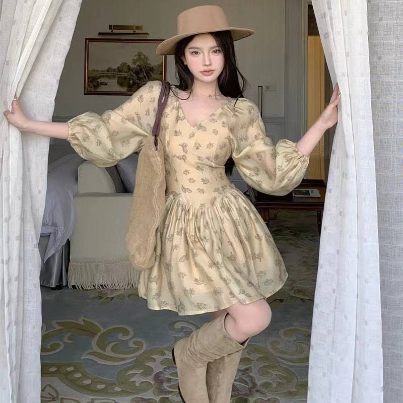 2023秋季甜美优雅长袖女装连衣裙新款秋游网红休闲炸街碎花短裙