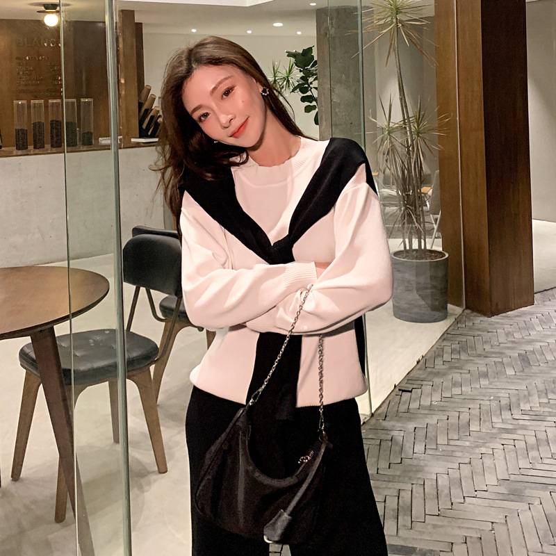 卫衣女宽松连帽新款春秋韩版百搭套头短款卫衣白色上衣外套