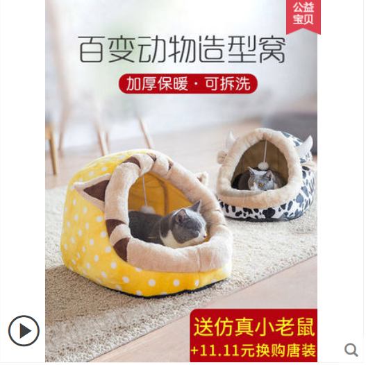 猫窝冬季保暖猫睡袋四季通用猫咪房子猫屋小型犬网红狗窝