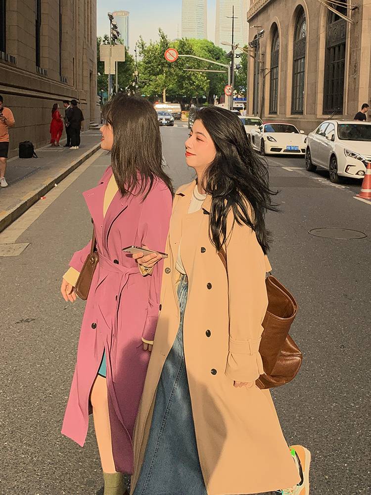 胖mm秋日基础款百搭简约风衣女装大码宽松遮肉显瘦长款外套