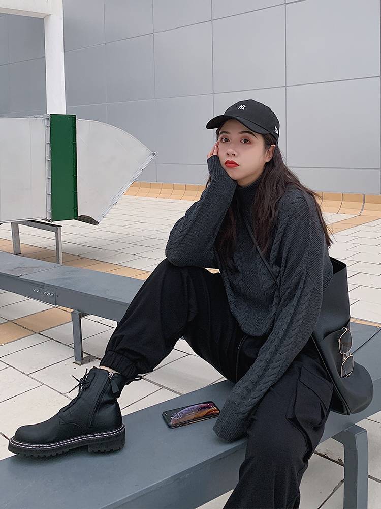 胖mm大口袋帅气束脚工装裤女秋装大码宽松百搭高腰显瘦长裤