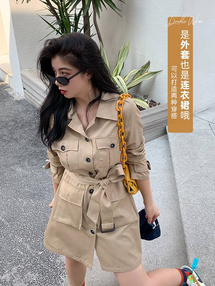 mm英伦风衬衫式风衣连衣裙女装秋款大码显瘦百搭休闲外套