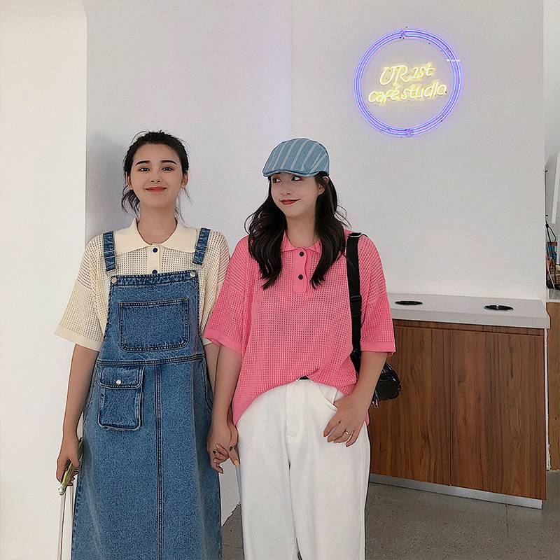微胖mm细网眼大码宽松透气T恤夏季女装POLO领显瘦短袖上衣