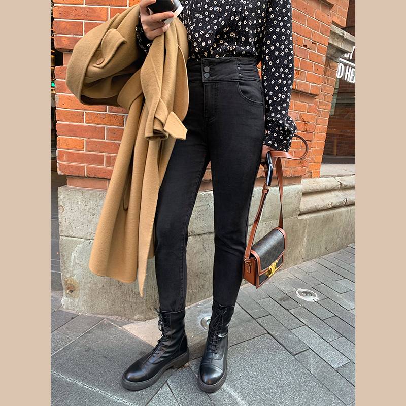 大码女装胖mm黑色高腰牛仔裤女秋冬2020新款修身显瘦复古铅笔裤子