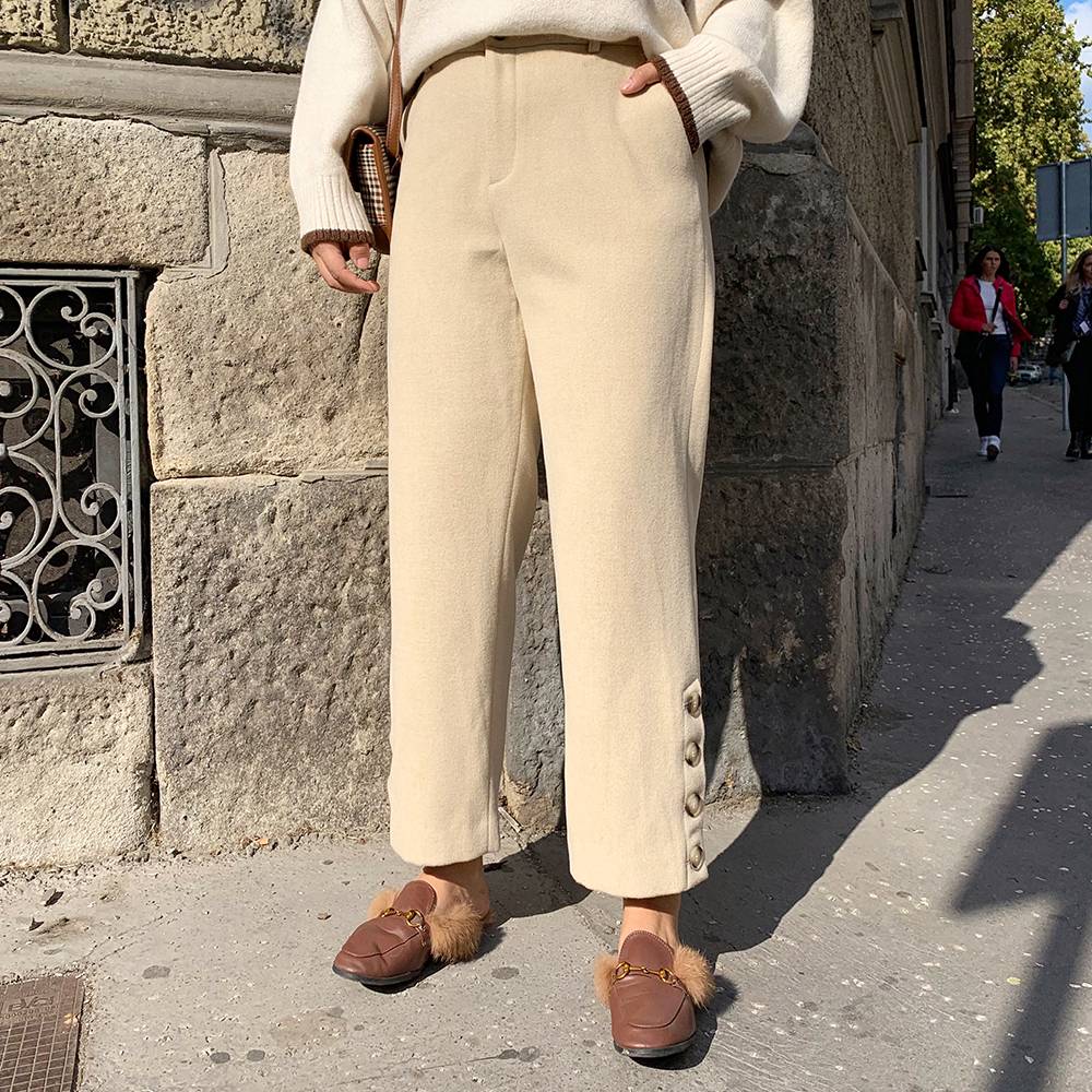 大码女装胖妹妹mm百搭显瘦阔腿裤2019秋冬新款宽松高腰毛呢长裤子
