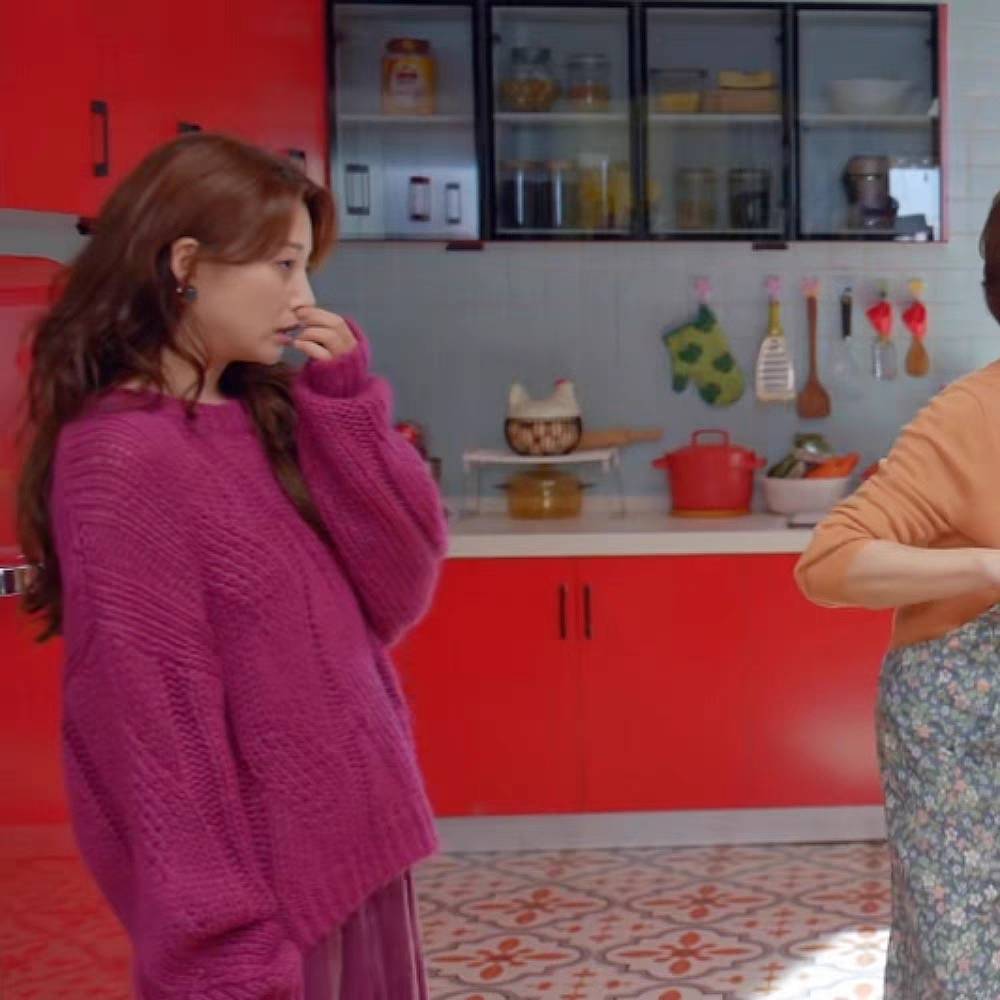 耀眼的你啊殷桃康子由同款玫红色圆领毛衣女宽松慵懒软糯针织衫春