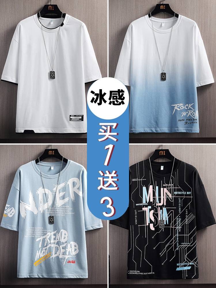 港风文艺夏季短袖t恤男宽松百搭ins潮流男生纯棉五分半袖体恤潮牌