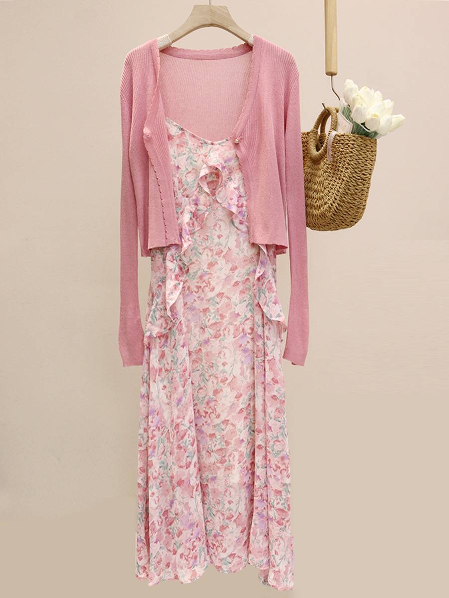 法式复古时尚连衣裙2025夏季新款女装气质百搭收腰显瘦印花裙子女