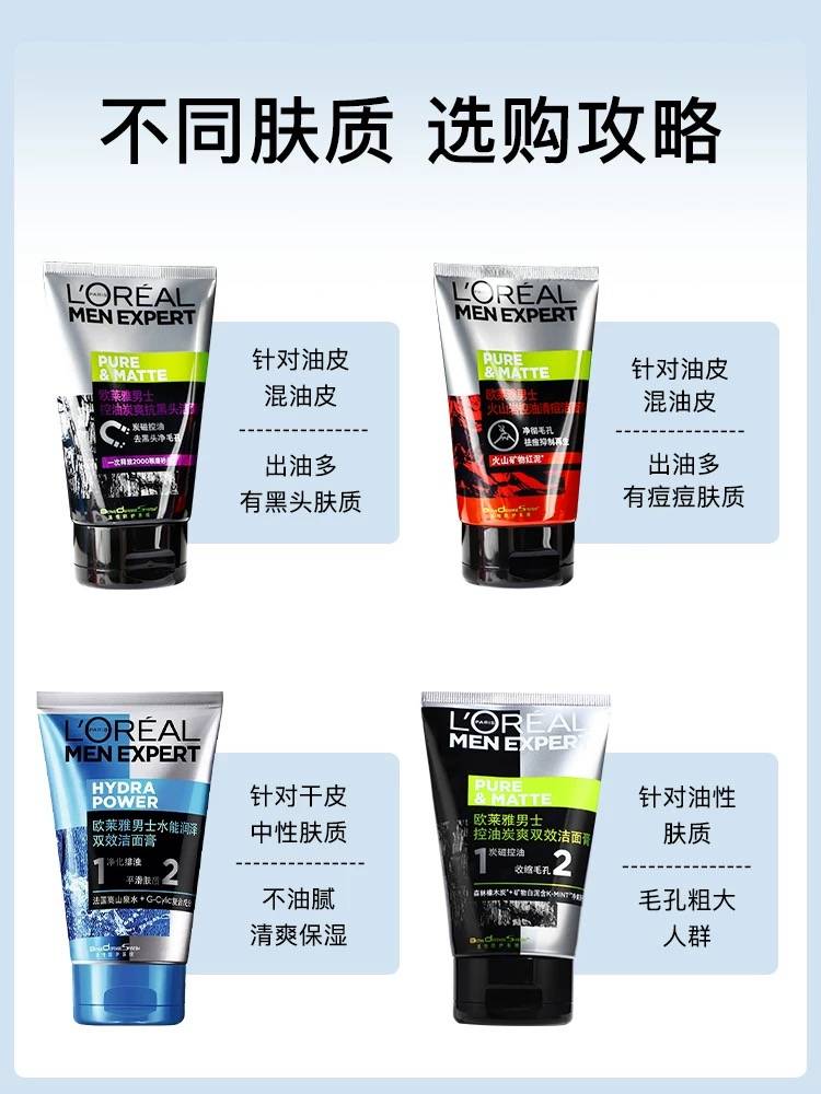 欧莱雅男士专用洗面奶去黑头收缩毛孔清爽控油洁面乳清洁磨砂保湿
