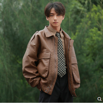 复古港风皮夹克 短款宽松质感秋冬皮衣外套男