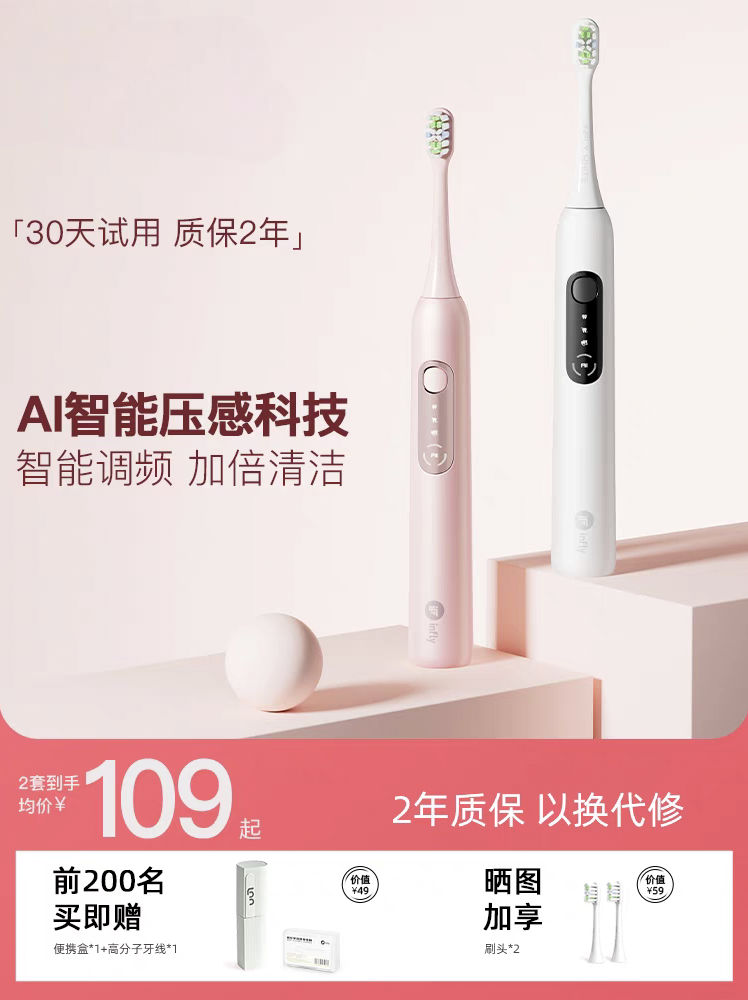 电动牙刷声波护龈情侣款男女成人充电式软毛刷礼盒装