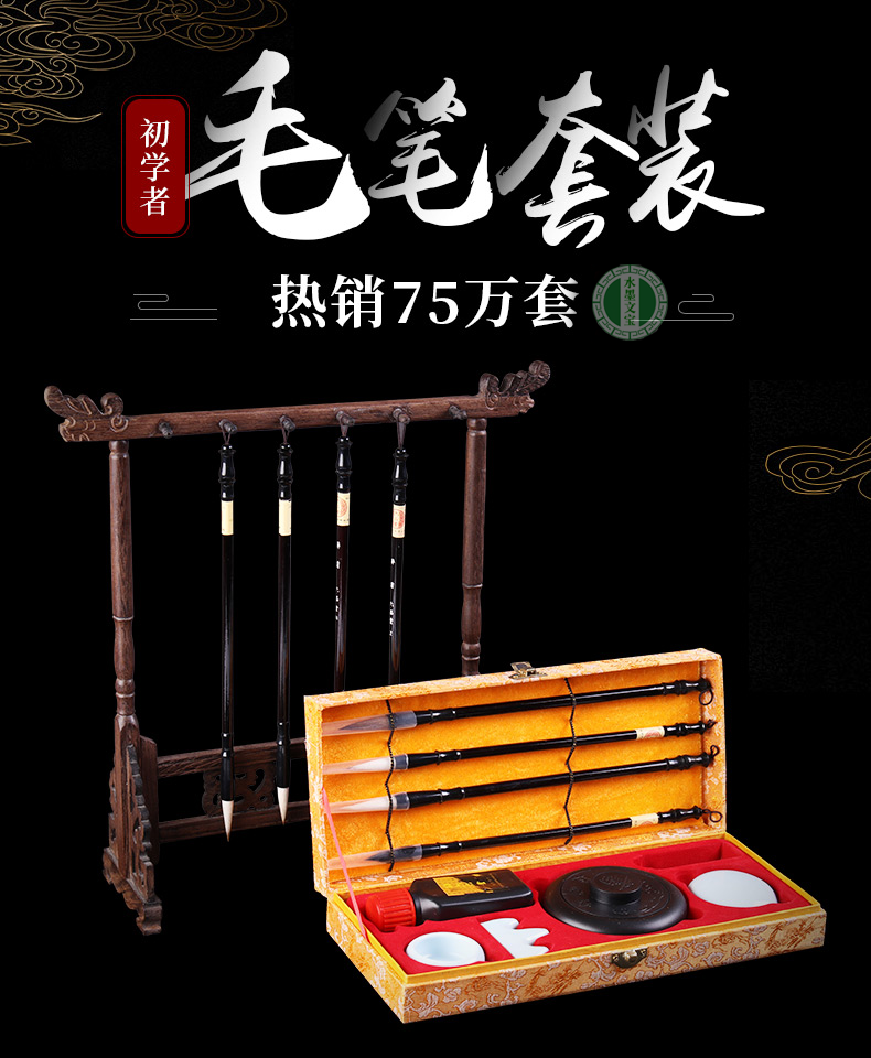 水墨文宝毛笔套装初学儿童小学生文房四宝笔墨纸砚成人套装狼毫毛