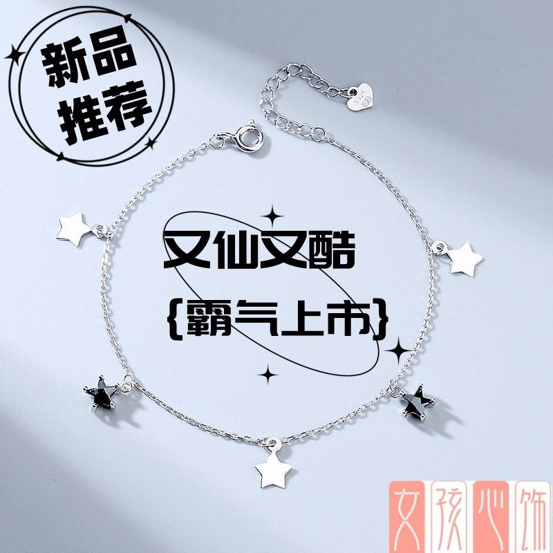 简约星星月亮手链s925纯银手饰ins韩版个性女款星月手饰清新饰品