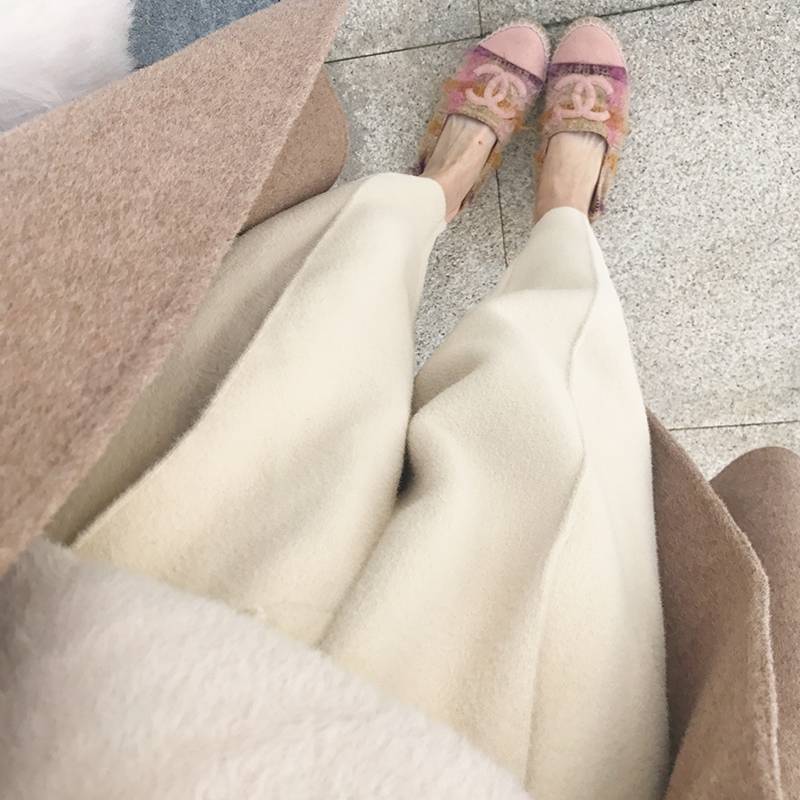 白色米色裤子休闲裤高腰毛呢哈伦裤女秋冬呢子九分裤针织萝卜裤