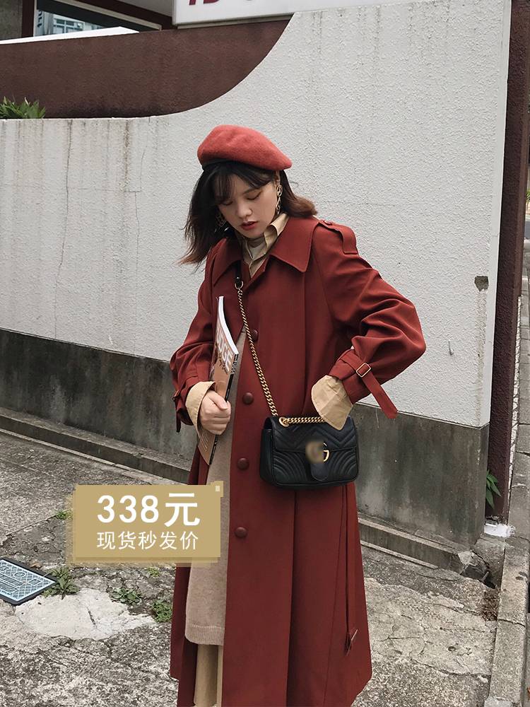 小个子风衣女中长款过膝春秋宽松娃娃领英伦风复古港风chic外套女