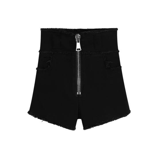 Ade独家定制 黑色牛仔短裤女夏2018新款韩版高腰拉链显瘦热裤