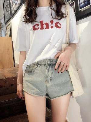 夏高腰复古牛仔短裤女韩版不规则热裤学生前短后长ins超火的裤子