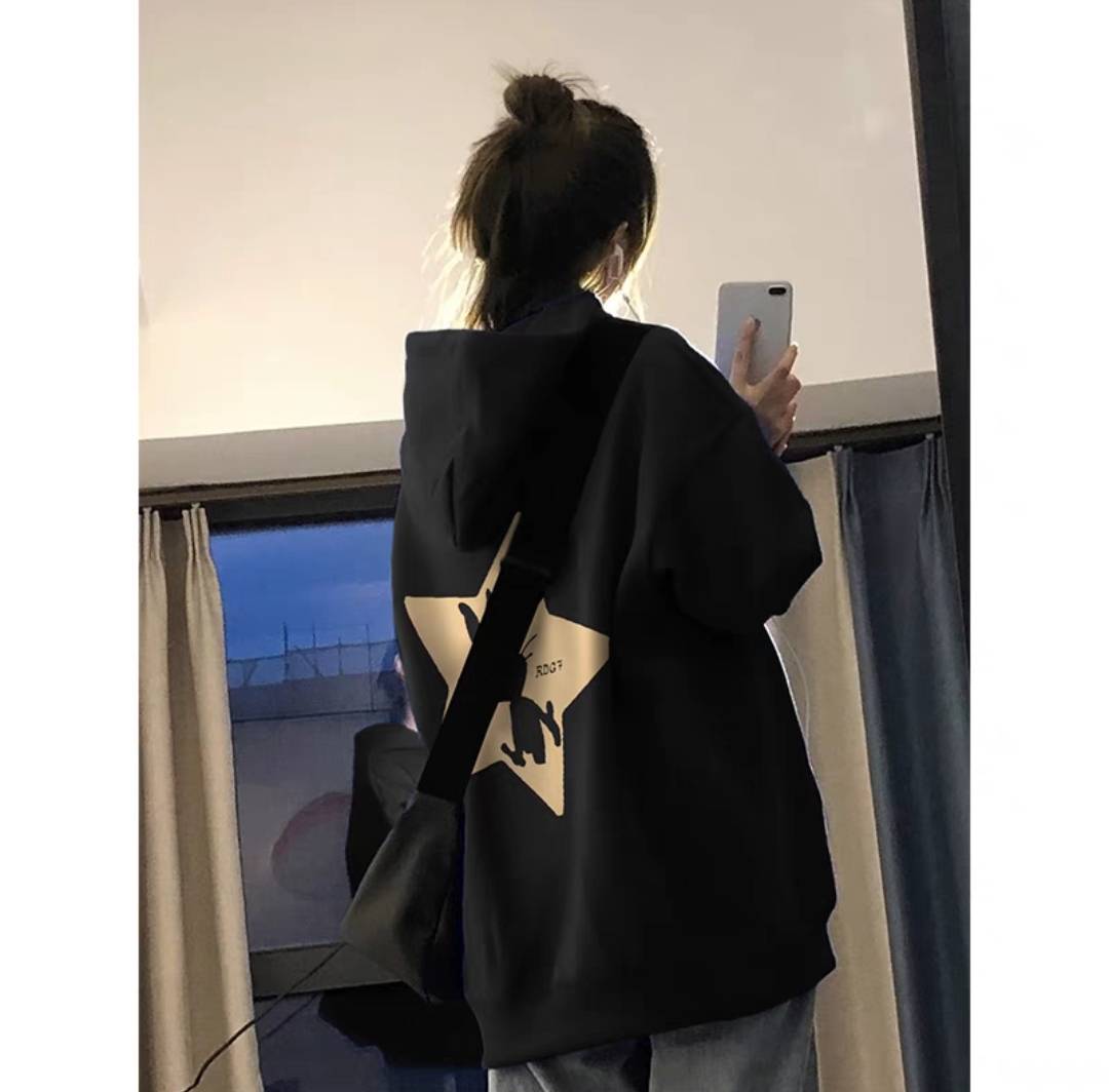 黑色连帽oversize外套卫衣女春秋薄款2023新款早春韩系上衣女