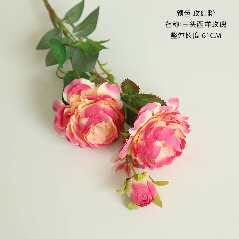 西洋玫瑰欧式包芯3头洋牡丹仿真花厂家家居装饰 婚庆墙假花MW51010
