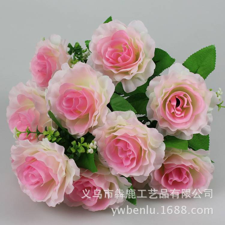 仿真玫瑰花束假花婚庆装饰客厅摆件绢花塑料花12 头碎边玫现货批发
