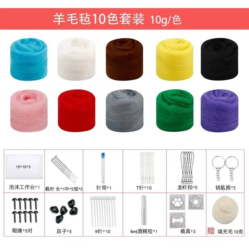 羊毛毡戳戳乐10色套装 10g/色工具配件 默认随机发货(可联系客服自选颜色)