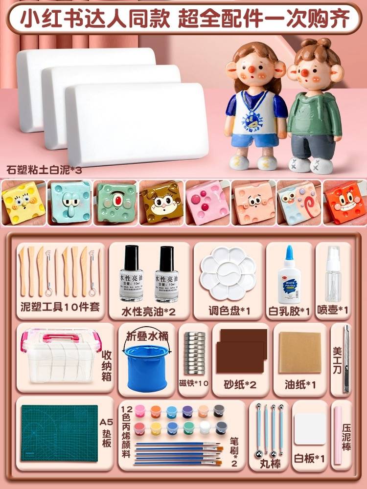 【小红书升级款】石塑粘土手工diy61件/2000g送收纳箱