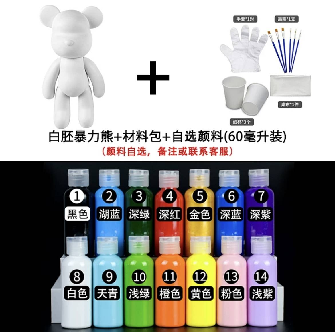 白胚暴力熊材料包 自选颜料(60毫升装)颜料自选备注或联系客服