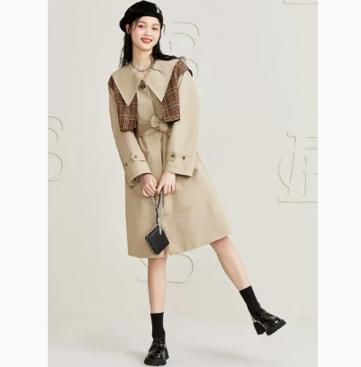 太平鸟两件套格纹风衣外套长款收腰宽松风衣大衣