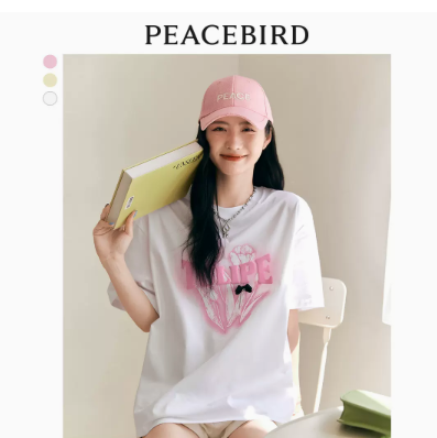 太平鸟短袖T恤女夏季2022新款设计感上衣夏款白色宽松郁金香印花