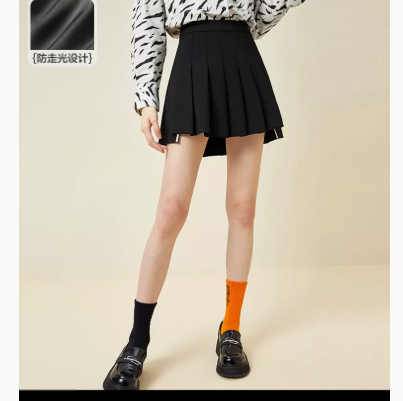 太平鸟百褶裙女黑色2022夏高腰半身裙显瘦学院风小黑裙a字短裙