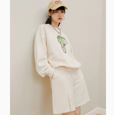 太平鸟蔬菜圆领卫衣女2022早秋新款宽松oversize落肩白色套头卫衣