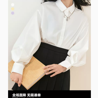 太平鸟衬衫女白色灯笼袖设计感2022春新款内搭叠穿长袖上衣外套