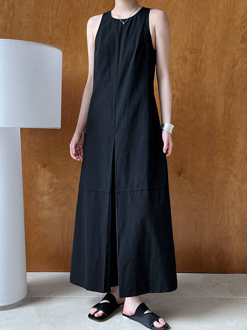 鹿西法式高级感圆领无袖连衣裙夏季新款窄肩中长款气质背心裙3978