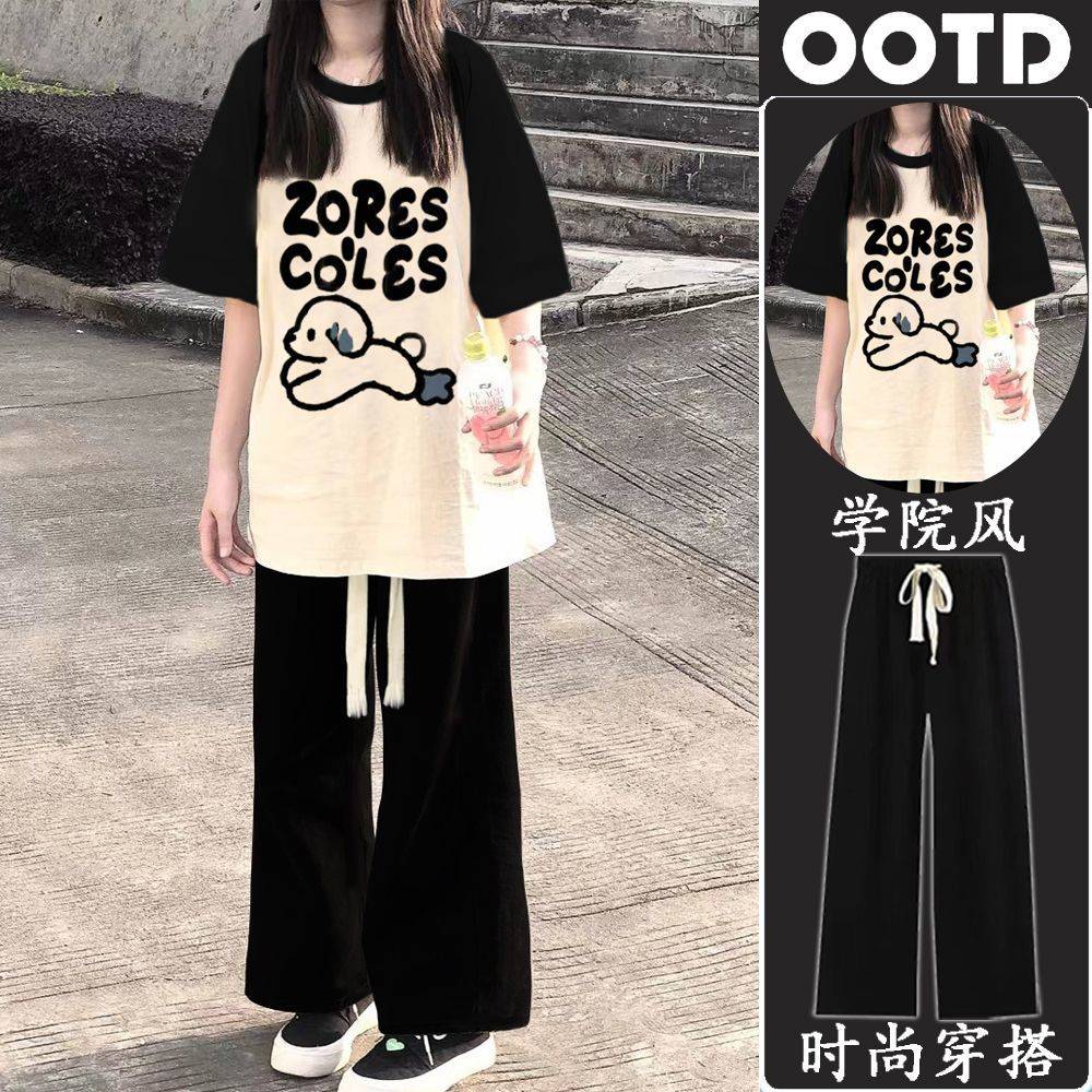 2019新款春秋装韩版宽松白色t恤长袖中长款套装卫衣打底衫女