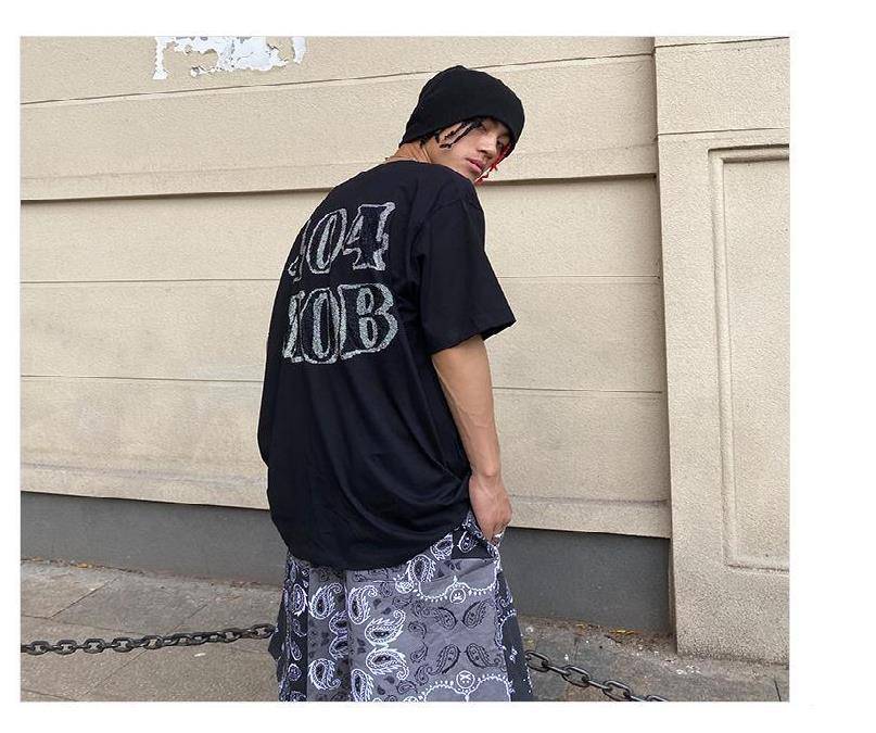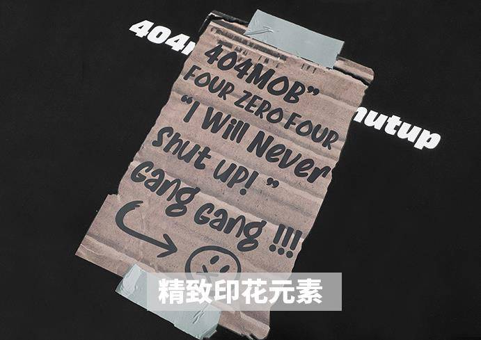 404MOB个性涂鸦贴纸标签印花T恤男女潮流ins创意趣味宽松圆领短袖