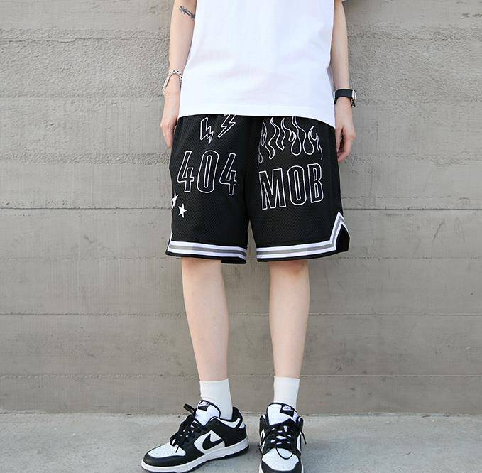 404MOB街头嘻哈美式刺绣双面网孔透气五分短裤男运动休闲篮球裤子