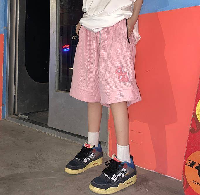 404MOB国潮粉色刺绣情侣运动短裤ins宽松潮流网孔透气篮球五分裤