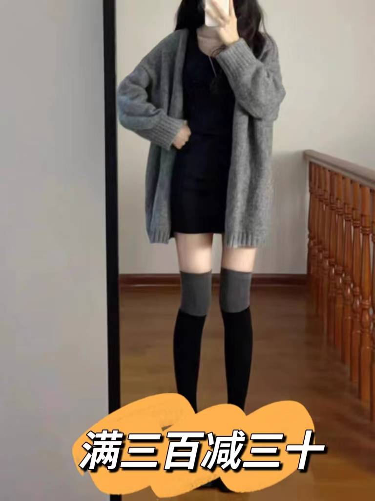 秋冬季纯欲风甜辣小个子灰色开衫毛衣吊带包臀连衣裙茶里茶气套装
