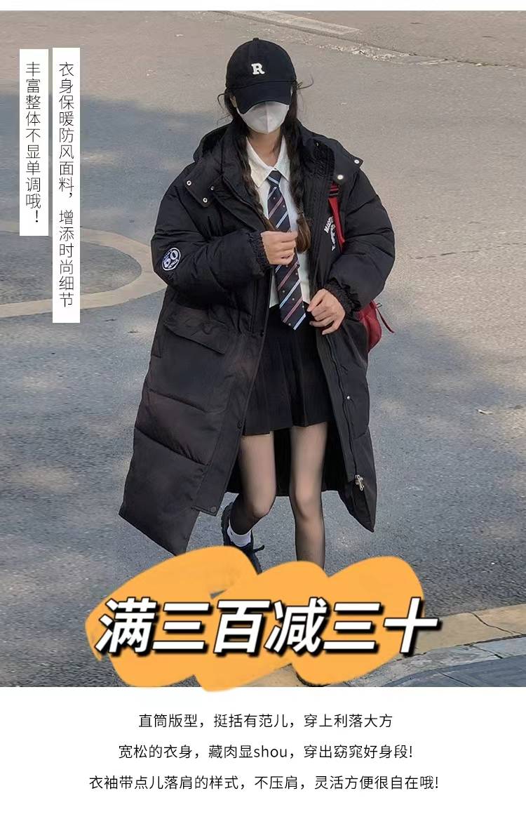 黑色长款羽绒服女新款百搭过膝白鸭绒冬季保暖外套