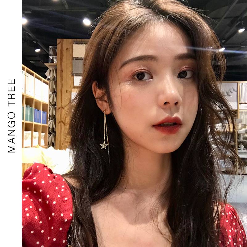 逐星少女 显脸瘦的长款星星流苏耳钉气质简约可调节链条耳环E263