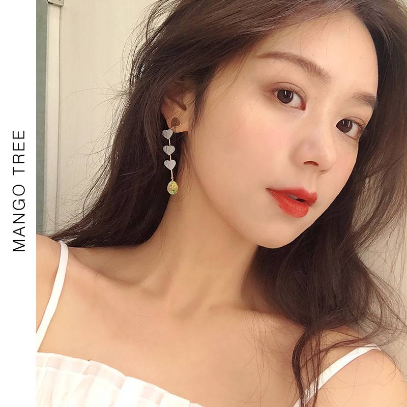 爱心满溢 日韩原宿风甜美少女心形耳环彩色水晶长款耳钉耳夹E278